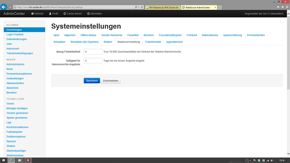 - Höhe des Abzugs der Fanbeliebtheit beim verkaufen des Stadionnamens kann eingestellt werden