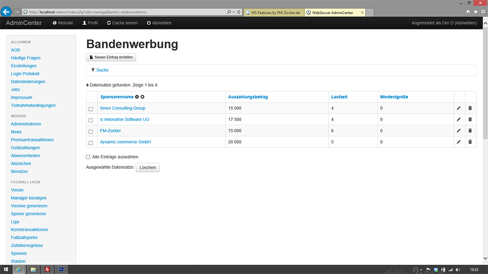 - Bandensponsoren können erstellt werden