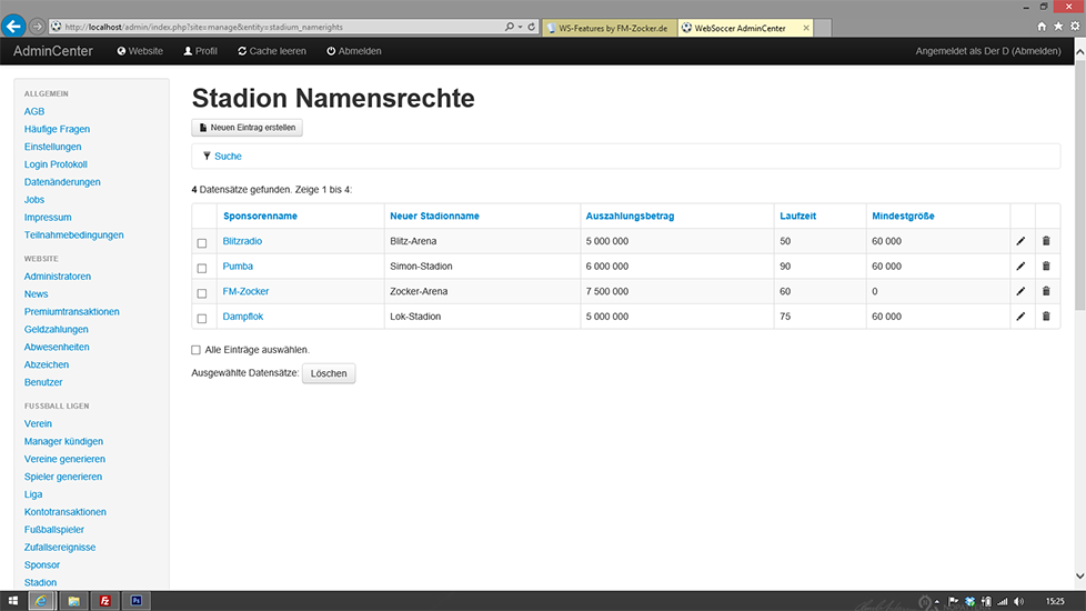 - Sponsoren für Stadion-Namensrechte können erstellt werden (inkl. vorübergehender Stadionname wärend der Vertragslaufzeit)