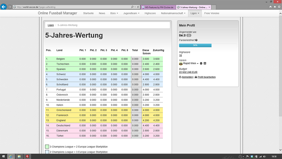 5 Jahreswertung der UEFA für den Websoccer 5Userbereich: