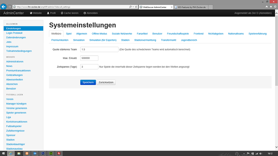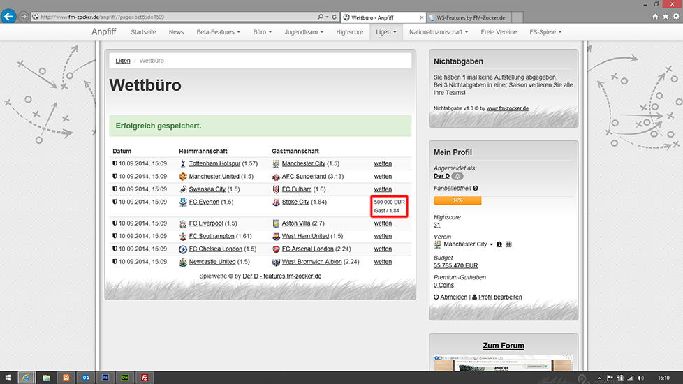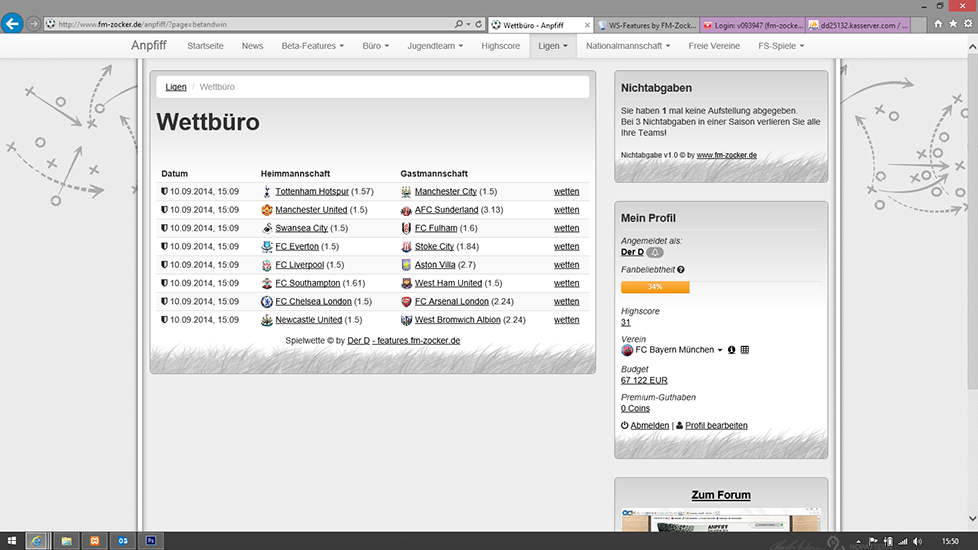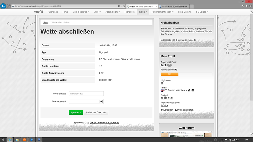 Spielwetten-System für den Websoccer 5