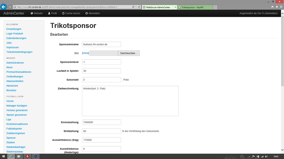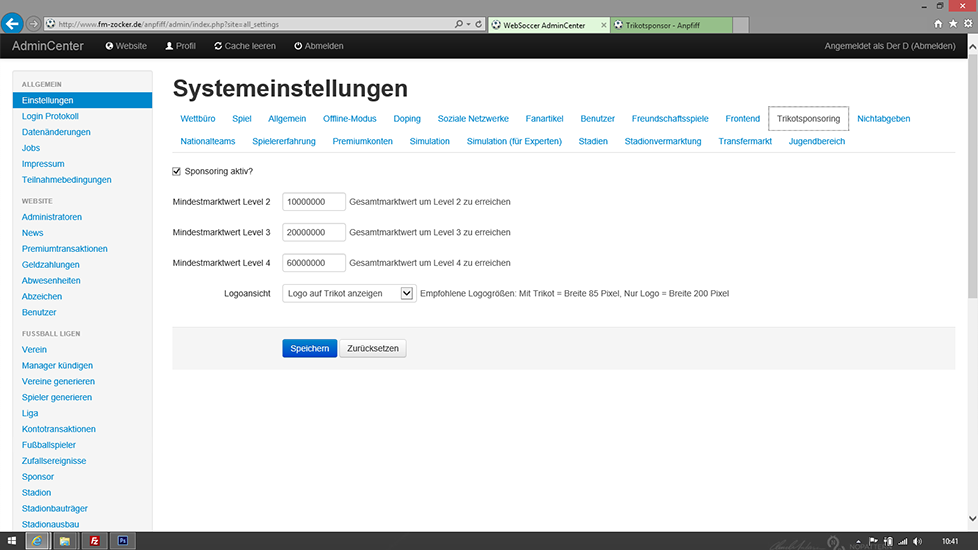 - Benötigter Gesamtmarktwert des Teams für die verschiedenen Sponsorenlevel einstellbar.