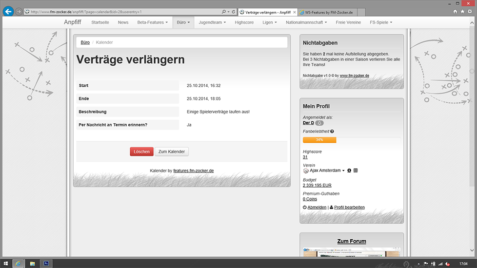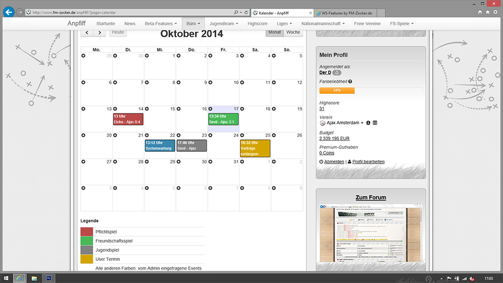 - Der User sieht alle eingetragen Spiele (Pflichtspiele, Freundschaftsspeile, Jugendspiele) im Kalender.