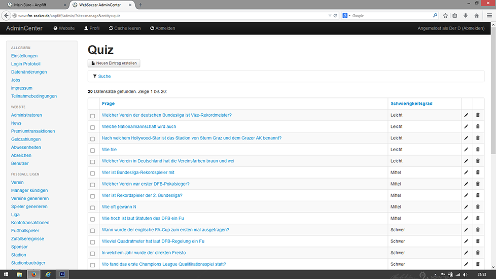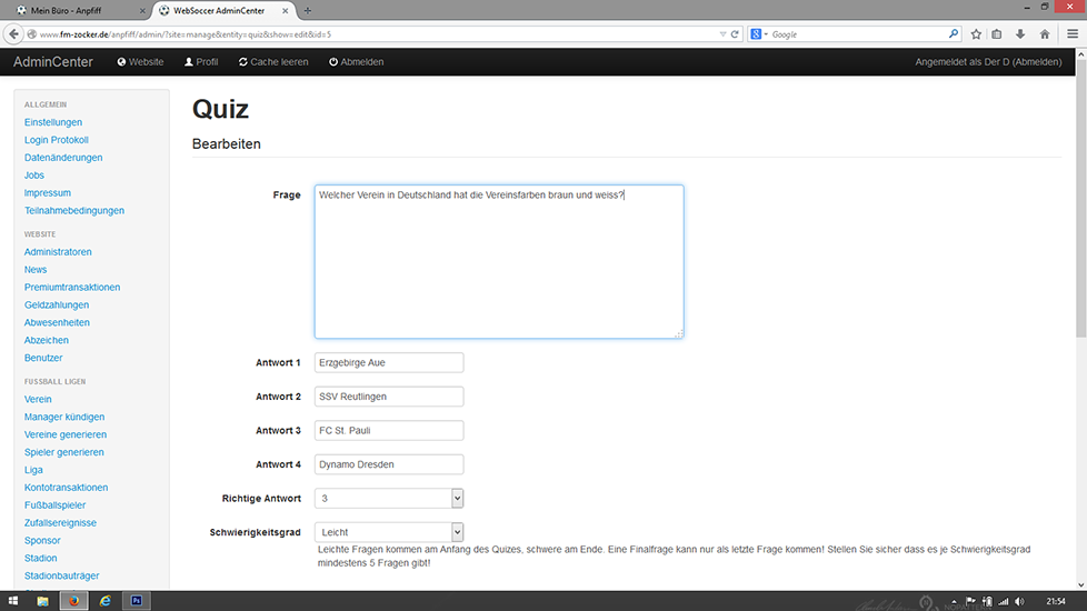 - Eigene Quizfragen können im Adminbereich erstellt werden.