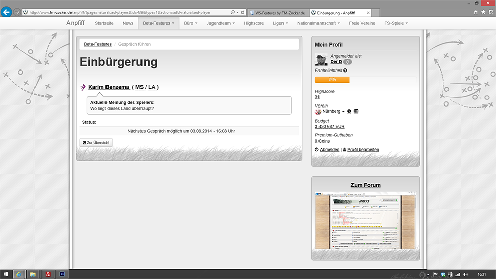 - User die Trainer einer Nationalmannschaft sind, können durch mehrere Gespräche versuchen, einen Spieler zum Wechsel der Nationalität zu bewegen.