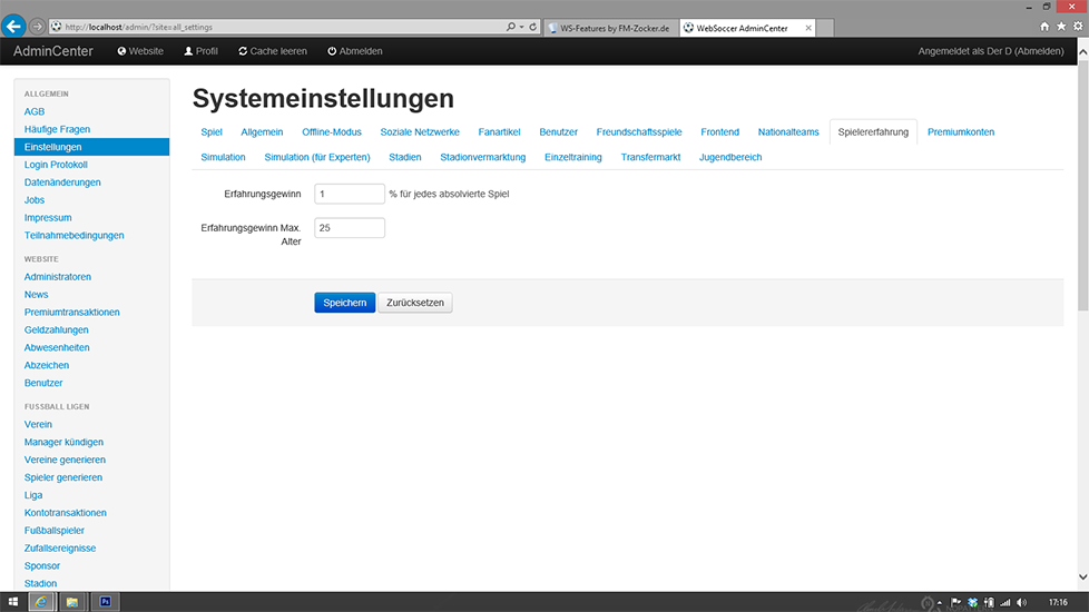 - Erfahrungsgewinn je Spiel im Adminbereich konfigurierbar.
